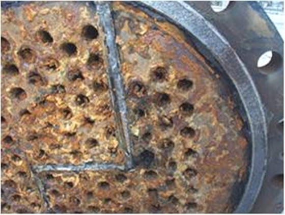 冷卻水中富含碳酸氫鈣等不穩定鹽類,在換熱管壁受熱分解,即轉變為碳酸鈣等致密硬垢,規則沉積在換熱管壁、冷卻塔填料及系統管網等處。